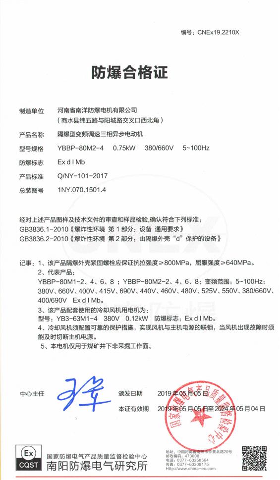 YBBP系列隔爆型變頻調速三相異步電動機,是我公司根據市場需求而開發的新產品,與變頻器配合使用,可以實現較寬范圍內平滑無級調速,調速范圍、動態響應、調速精度、低頻轉矩、轉差補償、功率因數、效率等方面均有很大的優越性,是滿足煤炭、石油、化工等有爆炸性氣體混合物電動機防爆性能符合GB3868.1-2010《爆炸性環境 第1部分:設備通用要求》和GB3868.2-2010《爆炸性環境 第2部分:由隔爆外殼“d”保護的設備》的規定。