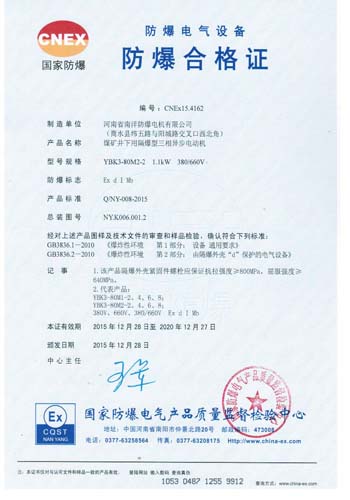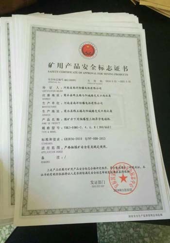隨著國家對煤礦開采行業的規范要求加大,一部分落后電機逐漸被市場淘汰,根據國家要求和市場需求,經過相關職能部門嚴格把關,我公司經過考核,順利取得